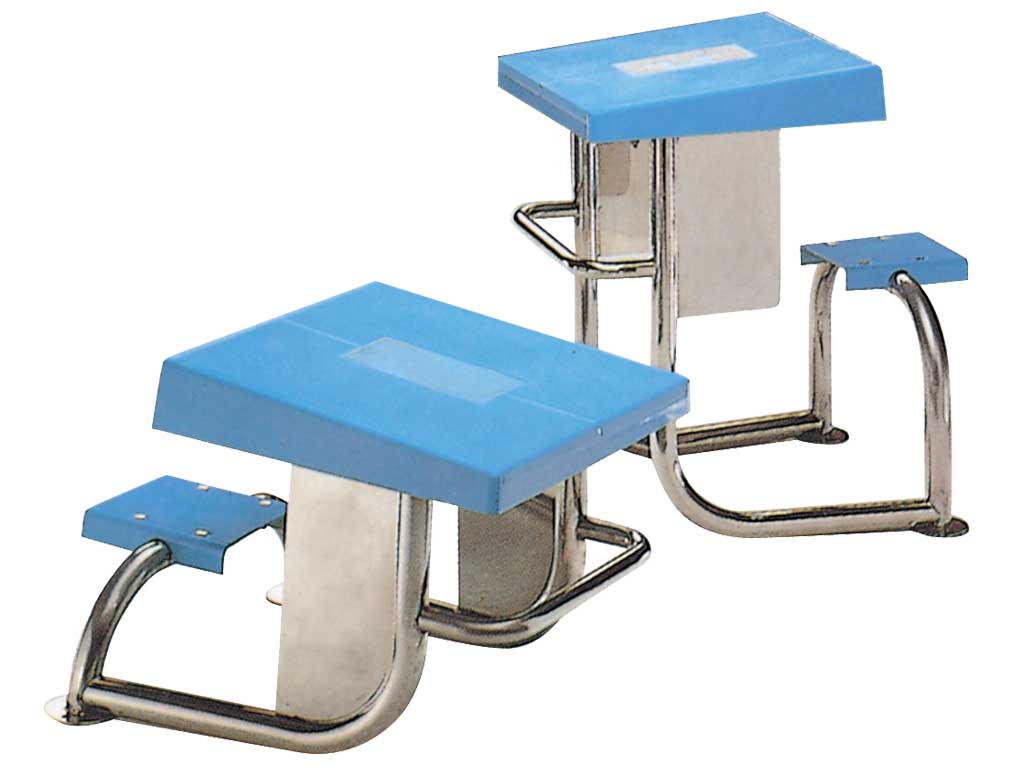 AISI 304 kalite Ø 42 mm paslanmaz çelik borudan gövde. Kaygan olmayan yüzeyli, polyester ve fiberglas 500 x 500 mm platform.
